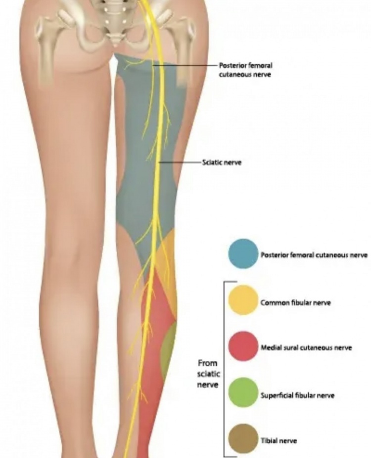 The term comes from the sciatic nerve, which emerges from the spine and runs down the leg, branching off into many branches along the way.