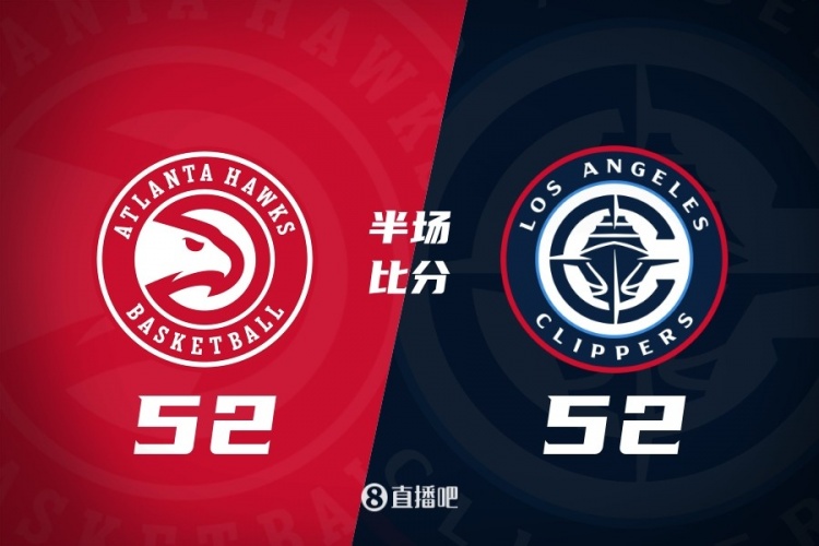 In the NBA regular season, the Clippers tied with the Hawks 52-52 at halftime.