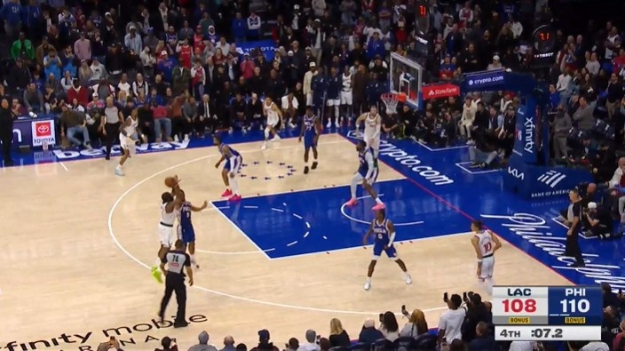 Missed call 2: In the last 19.3 seconds of the game, Clippers player Zubac stayed in the paint area for more than three seconds and did not actively defend the opponent's player immediately. This was a missed three-second defensive call.