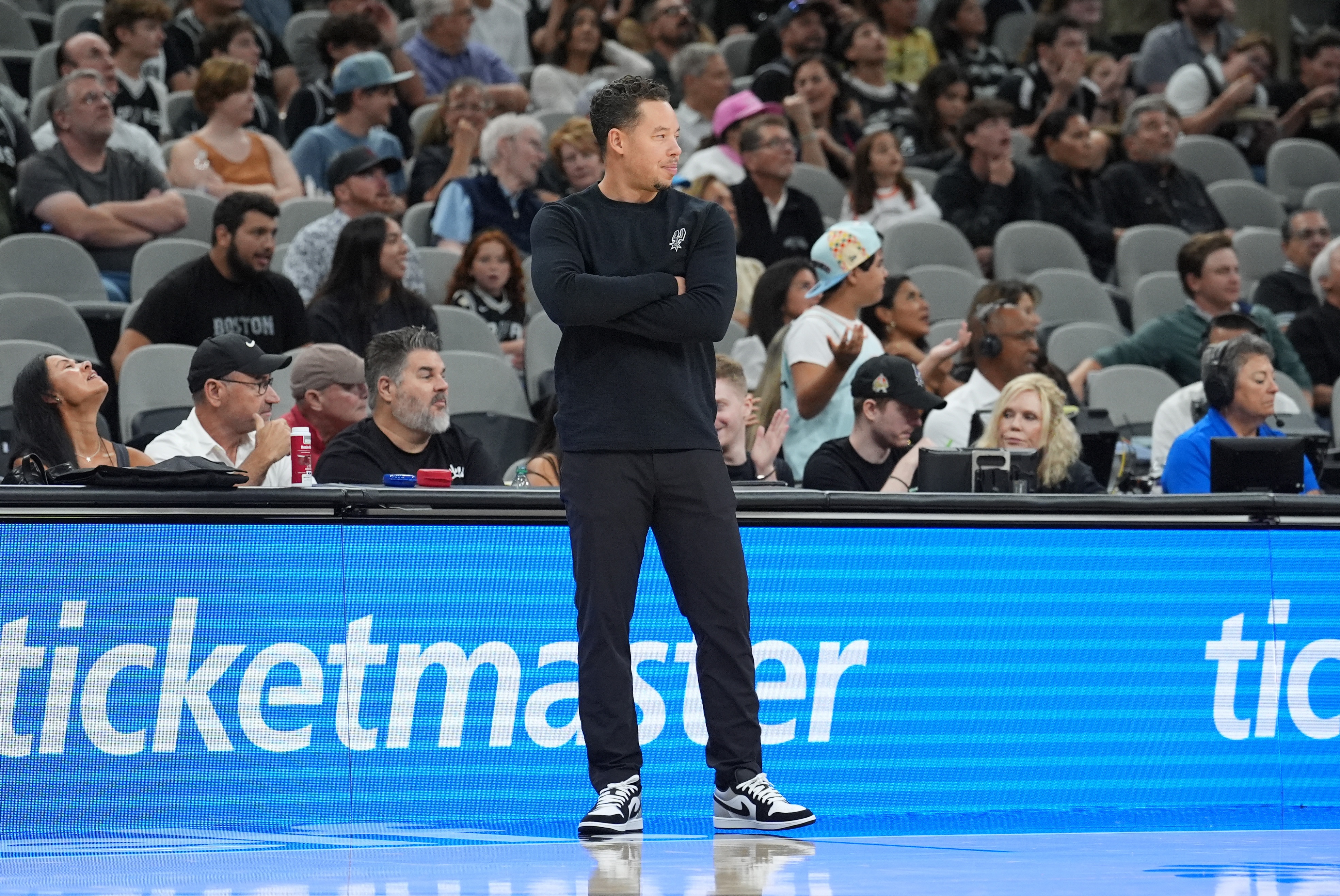 The Spurs lost to the Suns 118-130 today and suffered their first defeat of the season. When Spurs coach Mickey Johnson was interviewed by the media after the game, he talked about Harper who was injured in this game. The latter injured his left calf and retired in the second quarter. After dealing with the injury, he returned to the sidelines wearing a protective boot on his left leg.
