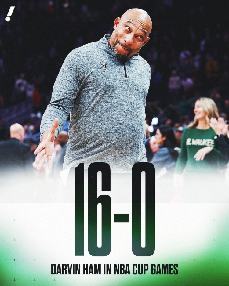 The current Bucks assistant coach Ham (former Lakers coach) has achieved an impressive record of 16 wins and 0 losses in the NBA Cup games he participated in.