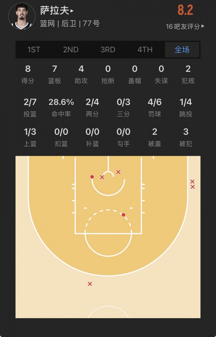 Nets No. 26 Ben Saraf played for 20.0 minutes