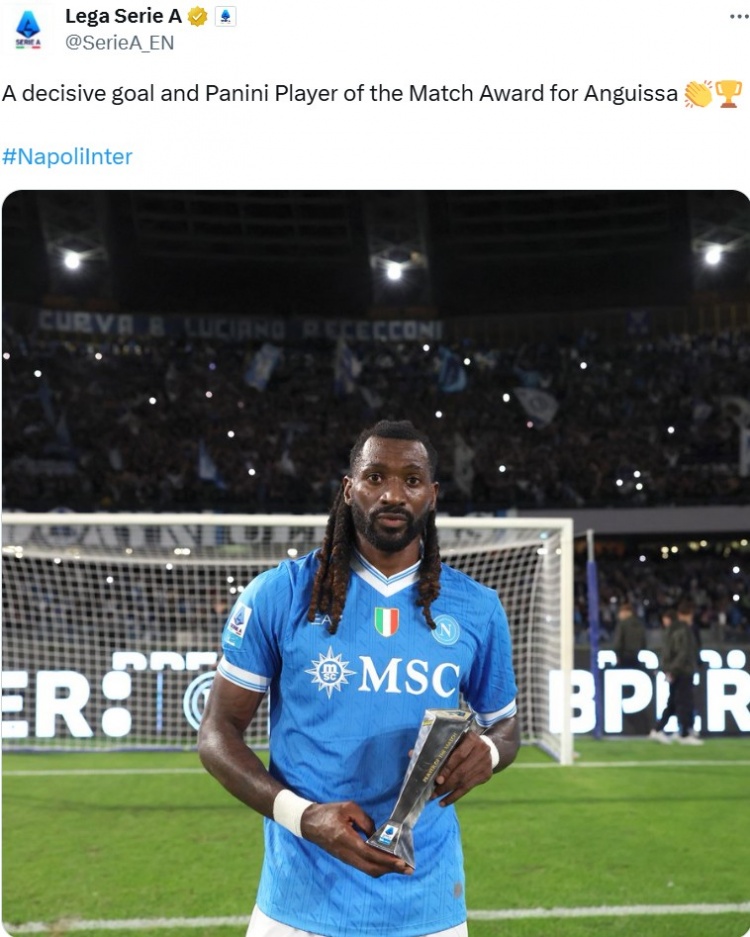 Naples player Anguissa played well in this game and scored a goal. After the game, he was also elected as the best player of the game by Serie A officials.