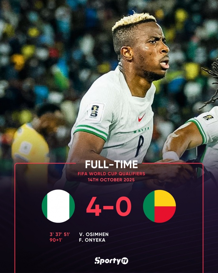 Due to South Africa's 3-0 victory over Rwanda, Nigeria can only be ranked second in Group C. Currently, Nigeria can only compete for a place in the 2026 World Cup by participating in the play-offs.