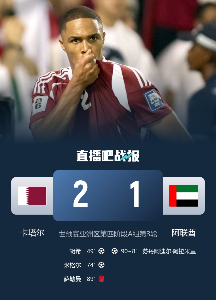 In the third round of Group A of the fourth stage of the Asian preliminaries, 10-man Qatar defeated the United Arab Emirates 2-1 and advanced to the 2026 World Cup.