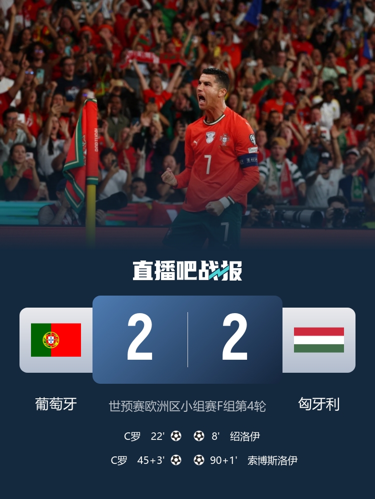 missed the opportunity to advance in advance! Portugal suffered a 2-2 draw with Hungary. Cristiano Ronaldo dominated the World Cup preliminaries with 41 goals.