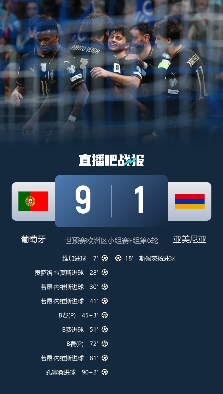 Directly connected to the United States, Canada and Mexico! Portugal beat Armenia 9-1, B Fee and Neves both scored hat tricks