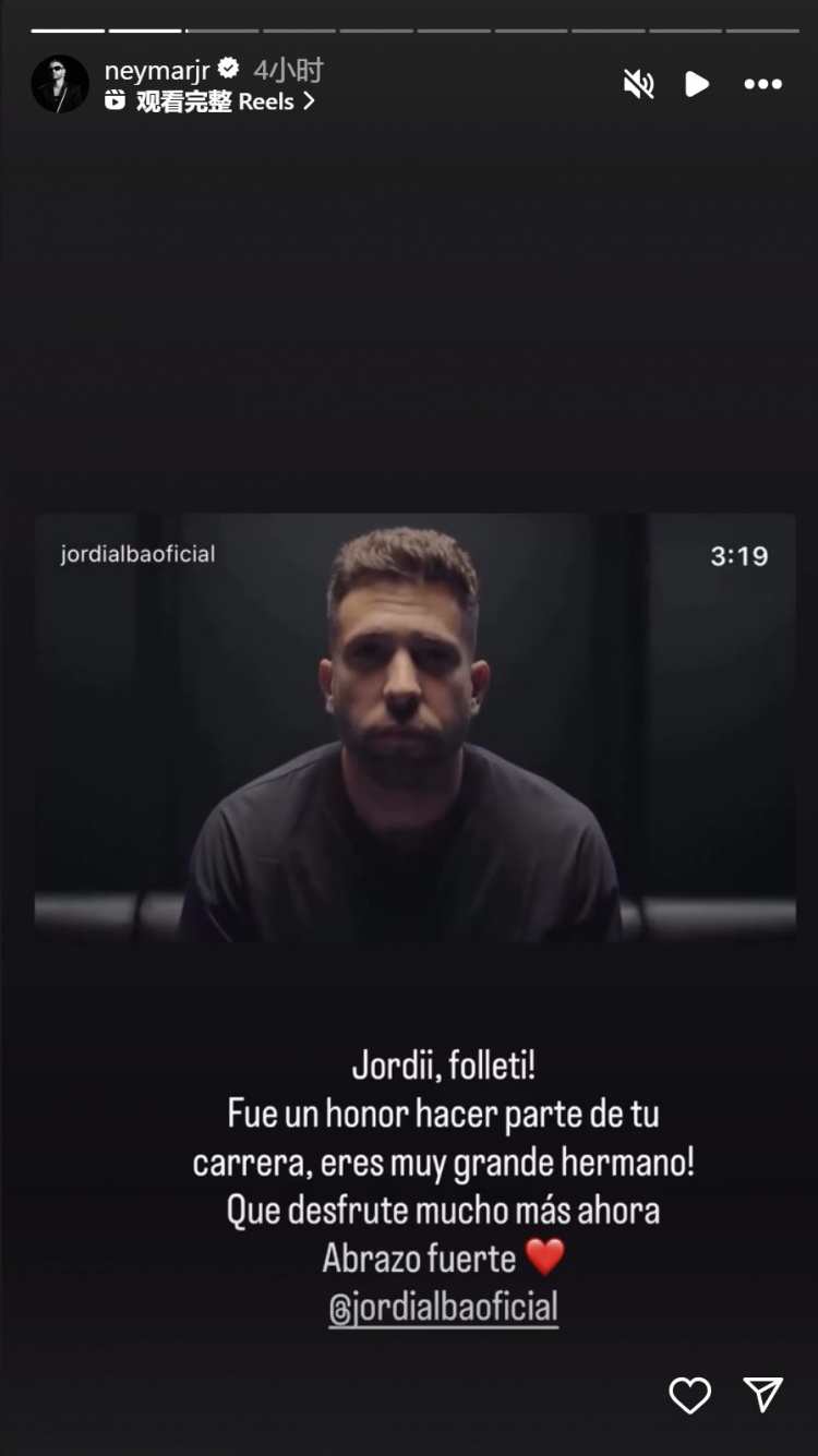 Neymar wrote: "Jordi, brother! It's an honor to be a part of your career, you are such an amazing guy! May you enjoy more good times in the future, give you a big hug."