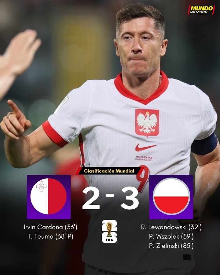 In the final round of the European preliminaries for the World Cup, Poland defeated Malta 3-2 away from home.
