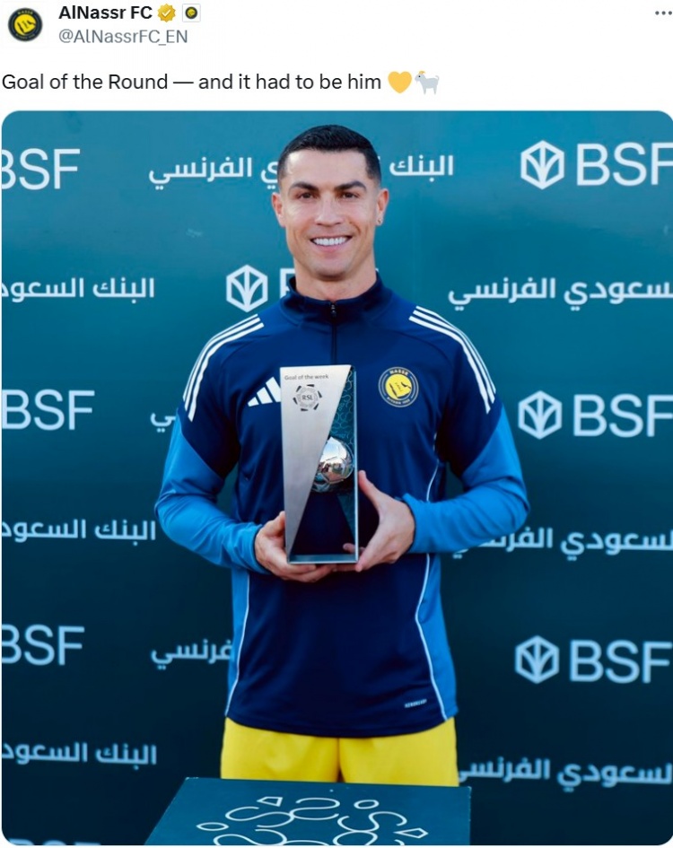Before this game, Cristiano Ronaldo received the trophy for the best goal in the last round of Saudi Arabia. In the last round of the team's 2-1 victory over Feha, Cristiano Ronaldo scored twice.