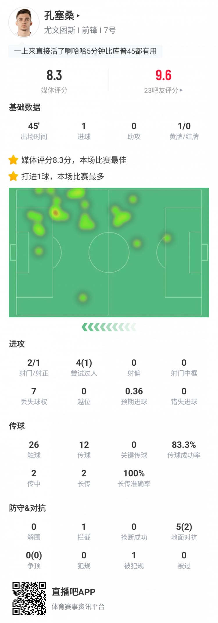 Juventus drew 2-2 away from Villarreal in this round of Champions League. Kosésan, who came on as a substitute, performed well. The following is his personal data: